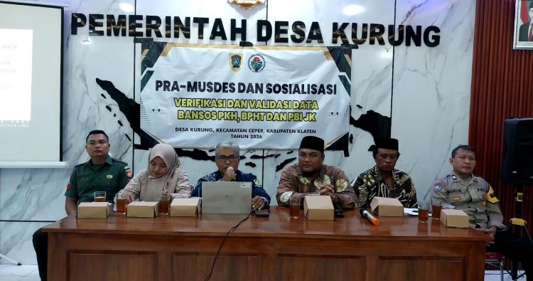 KLATEN – Babinsa Desa Kurung dari Koramil 23/Ceper Kodim 0723/Klaten, Koptu Sudomo menghadiri kegiatan Pra Musyawarah Desa (Pra-Musdes) verifikasi dan validasi data penerima bantuan sosial Program Keluarga Harapan (PKH), Bantuan Pangan Non Tunai (BPNT), dan Penerima Bantuan Iuran Jaminan Kesehatan (PBI-JK) di Aula Balai Desa Kurung Kecamatan Ceper Kabupaten Klaten (11/2/2026)