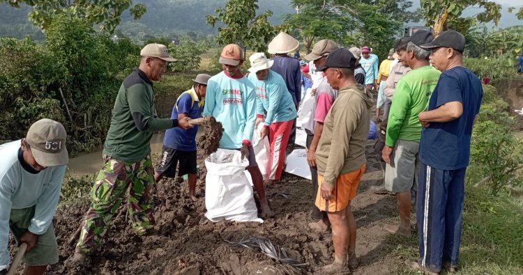 Kegiatan tersebut dilaksanakan menyusul jebolnya tanggul sungai akibat tingginya debit air yang dipicu curah hujan dalam beberapa waktu terakhir. Kerusakan tanggul berdampak pada lahan pertanian warga di sekitar aliran sungai sehingga membutuhkan penanganan segera agar tidak menimbulkan kerugian yang lebih besar.