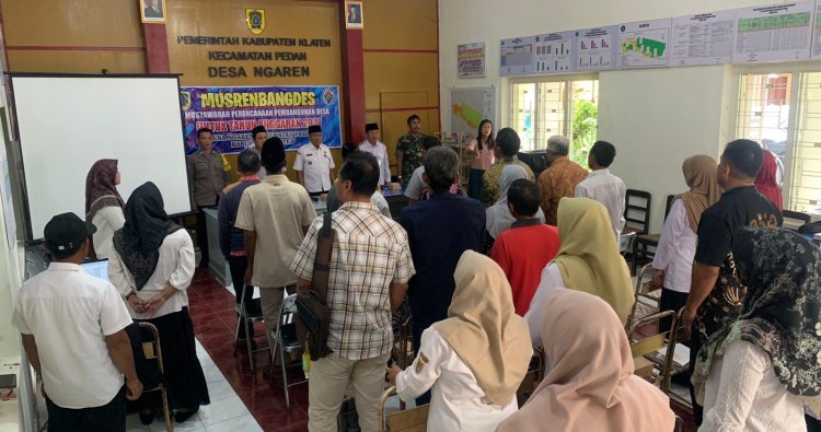 KLATEN – Babinsa Desa Ngaren Koramil 04/Pedan Kodim 0723/Klaten, Serda Sri Agus Nugroho menghadiri kegiatan Musyawarah Perencanaan Pembangunan Desa (Musrenbangdes) Desa Ngaren Tahun Perencanaan 2027 yang dirangkaikan dengan Musyawarah Desa Khusus (Musdesus) Verifikasi, Validasi dan Penetapan Keluarga Penerima Manfaat (KPM) Bantuan Langsung Tunai Dana Desa (BLT DD) Tahun Anggaran 2026. Kegiatan tersebut dilaksanakan di Gedung Serba Guna Desa Ngaren Kecamatan Pedan Kabupaten Klaten. (21/01/2026)