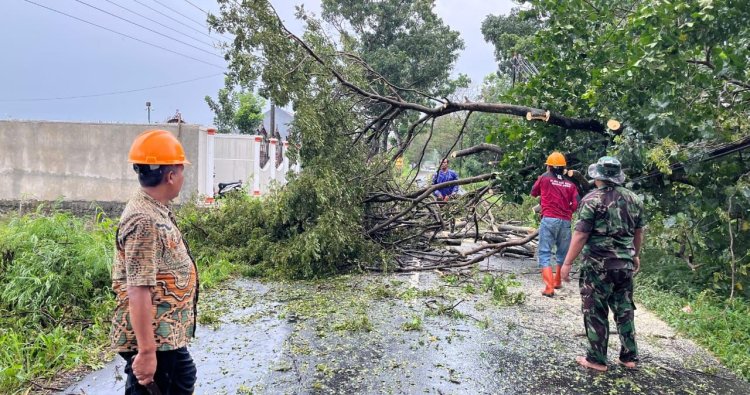 “Cuaca ekstrem mengakibatkan tumbangnya sejumlah pohon yang menutup jalan umum dan menimpa rumah warga serta instalasi listrik. Kami bersama warga bergerak cepat melaksanakan pembersihan material untuk memulihkan akses jalan dan mengurangi potensi bahaya, ” ujar Sertu Indarto.