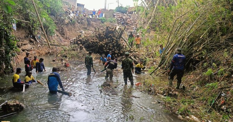KLATEN – Danramil 19/Trucuk Kodim 0723/Klaten, Kapten Inf Widoyo bersama 9 orang Babinsa, relawan, BPBD, dan warga melaksanakan kegiatan Karya Bakti pembersihan rumpun bambu yang roboh ke aliran Sungai Kali Cino sekaligus pembersihan sungai di Dukuh Buluwangi, Desa Jatipuro Kecamatan Trucuk Kabupaten Klaten, guna mengantisipasi potensi banjir pada musim penghujan. Minggu (18/01/2026)