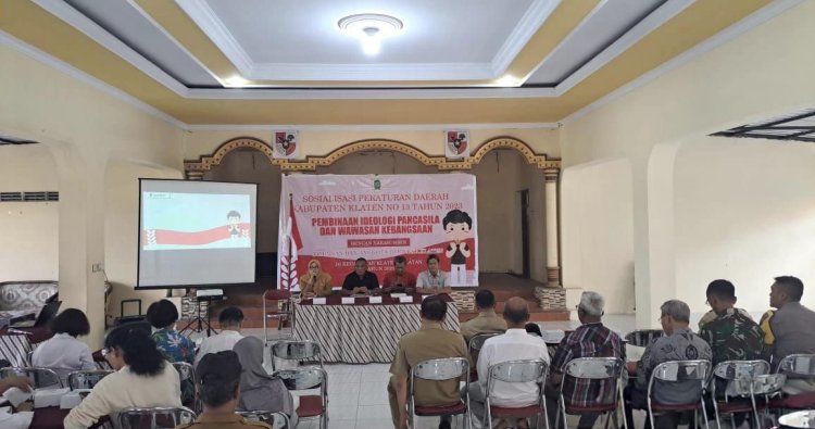 Sosialisasi dilaksanakan dalam rangka menindaklanjuti Peraturan Daerah Kabupaten Klaten Nomor 13 Tahun 2023 tentang Pembinaan Ideologi Pancasila dan Wawasan Kebangsaan, dengan tujuan memperkuat pemahaman serta pengamalan nilai-nilai Pancasila di tengah kehidupan bermasyarakat, berbangsa dan bernegara.