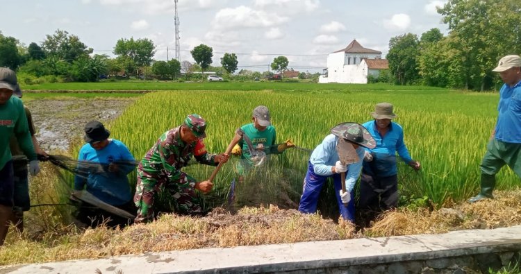 Klaten – Dalam rangka mendukung program pemerintah di bidang ketahanan pangan serta membantu petani dalam mengendalikan serangan hama, Babinsa Desa Bentangan Koramil 22/Wonosari Kodim 0723/Klaten, Sertu Agus Triyono melaksanakan pendampingan kepada Kelompok Tani (Poktan) Agung Rejeki dalam kegiatan gropyokan tikus yang berlangsung di lahan pertanian Desa Bentangan Kecamatan Wonosari Kabupaten Klaten. (27/10/2025)