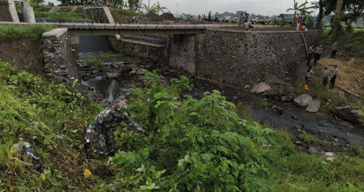 KLATEN — Babinsa Desa Cucukan Koramil 09/Prambanan Kodim 0723/Klaten, Serka Imam Bonajar, bersama warga masyarakat, Polsek Prambanan serta satu peleton Dalmas Polres Klaten melaksanakan kegiatan gotong royong pembersihan sungai dan Jembatan Matangan yang berada di Desa Cucukan Kecamatan Prambanan Kabupaten Klaten, Minggu (11/01/2026).