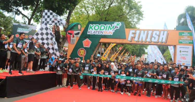 KLATEN – Ribuan peserta dari berbagai kalangan masyarakat tampak antusias mengikuti ajang “Kodim Klaten Run 2025” yang digelar oleh Komando Distrik Militer (Kodim) 0723/Klaten di Alun-Alun Kabupaten Klaten, Minggu (26/10/2025). Kegiatan tersebut diselenggarakan dalam rangka memperingati Hari Ulang Tahun (HUT) ke-80 Tentara Nasional Indonesia (TNI) dan HUT ke-75 Kodam IV/Diponegoro Tahun 2025.