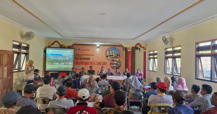 KLATEN – Upaya peningkatan kesiapsiagaan masyarakat terhadap potensi bencana gempa bumi terus diperkuat melalui kegiatan Sosialisasi dan Pelatihan Bangunan Rumah Rakyat Tahan Gempa (BARRATAGA) yang diselenggarakan oleh Badan Penanggulangan Bencana Daerah (BPBD) Kabupaten Klaten. Kegiatan tersebut dilaksanakan di Balai Desa Gentan, Kecamatan Gantiwarno Kabupaten Klaten dengan melibatkan berbagai unsur pemerintah dan masyarakat setempat. Kamis (23/4/2026)